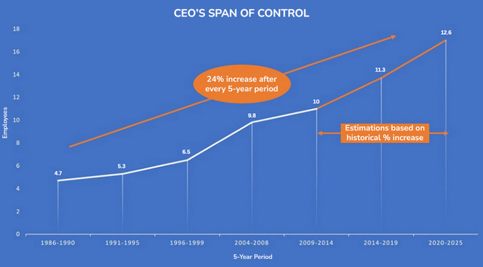Figure 2: CEOs span of control has risen considerably in the last 2 decades