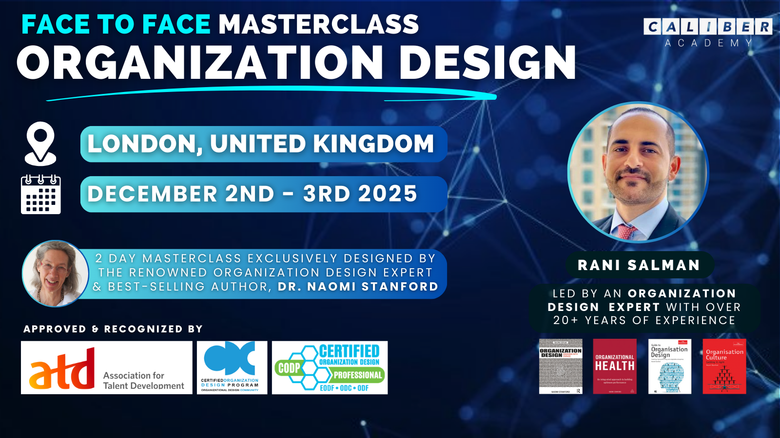 We are proud to conduct our unique and certified event on Organization Design. This 2-day masterclass will be conducted by an OD thought leader with over 20 years of experience in the field. The Masterclass will take a deep dive and practical look at designing optimal organizational structures. However, it stresses the comprehensive systems approach to organizational design which includes alignment to strategy, rewards & performance, processes, culture, roles & responsibilities, etc.