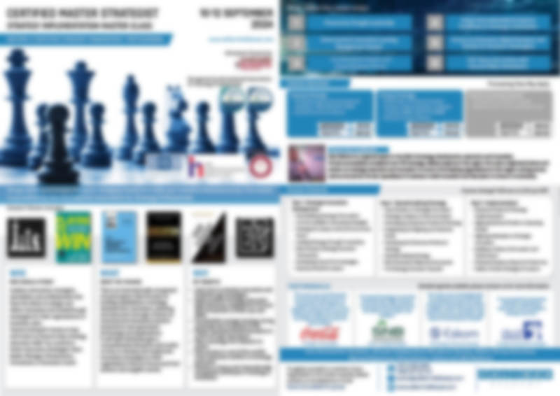 This training program takes participants on a unique learning journey which involves pre-and post training activities. The program focuses on one of the most critical hurdles organization’s face today, which is strategy implementation. It is estimated that approximately 70-90% of organizations fail to achieve their intended strategies often due to a number of factors which will be addressed in the course itself. Delivered by some of the leading regional experts in the field, the 3-day program gives an unparalleled comprehensive toolbox for all six key dimensions of strategy execution. These dimensions include strategy conception, operating model design, linkage to performance management, strategic alignment, operational alignment, and strategy oversight. Other than being a very practical course centered around practical cases, exercises, and examples; the certified course aims to give next generation techniques and trends on strategy implementation.